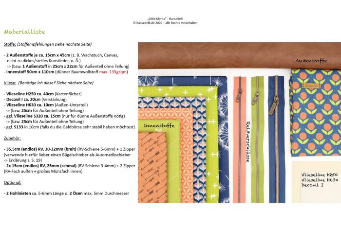 Geldborse Little Mynta Hansedelli Schnittmuster
